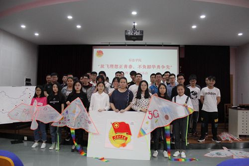 会议的开始,全体同学起立,请团旗,奏唱团歌,并跟着主持人重温入团誓词。今年是新中国成立70周年,也是决胜全面建成小康社会的关键之年,与此同时还是五四运动100周年。至此主持人邀请台下的胡文康、皇甫皓宁等五位同学将自己的团徽贴纸贴在了地图上,并给大家讲述了在这改革开放的70年来,科技给他们的家乡、我们的社会带来了翻天覆地的变化,表达了对祖国的未来的衷心祝愿。讲述结束后,大家开展了团徽拼图和放飞科技梦的活动,支部干部代表班级同学完成团徽拼图,寓意班级将团结协作讲团工作越做越好。同时,同学们在空白的风筝上绘制自己的科技梦,DIR自己喜爱的风筝,现场邀请同学讲述自己的科技梦想。