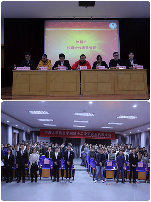 第十二次研究生代表大会在曹光彪信息楼5楼报告厅成功举行。学院副院长王伦耀老师、党委副书记屠春飞老师、学工办主任孙文静老师,E-青年工作室主任黄青年老师、十一届研会主席团李娜娜同学、各兄弟学院研会代表和老王论坛