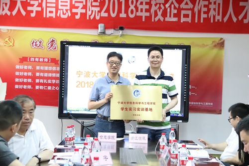 随后,举办了2018年新增实习基地签约仪式。林奇凯书记代表学院分别与TCL通讯(宁波)有限公司、宁波思艾特软件有限公司、莱茵技术-商检(宁波)有限公司、浙江商安信息科技有限公司、宁波方太厨具有限公司、中芯集成电路(宁波)有限公司、宁波腾翔信息系统工程有限公司以及三家校友企业:杭州车厘子智能科技有限公司(88外语来晓敏创办)、浙江悦讯信息科技有限公司(96自动化钟曙徽创办)、宁波酷趣网络科技有限公司(06计算机徐洪斌创办)10家企业签订了《共建大学生实习实训基地协议》,并授牌。至此,学院签约授牌的学生实习实训基地达到50家。