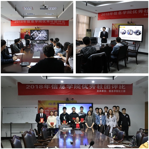 学生中国特色社会主义理论体系研究会,嵌入式协会共八个社团参与了此次社团评比。首先,先由各社团负责人从人员架构与分工、往年举办的活动、社团的优点及不足等方面对社团进行介绍,然后在场参评人员进行相应的提问,并进行打分。经过两个多小时激烈的答辩,最终创新电子协会,电脑维修社,机器人协会获得了前三名。