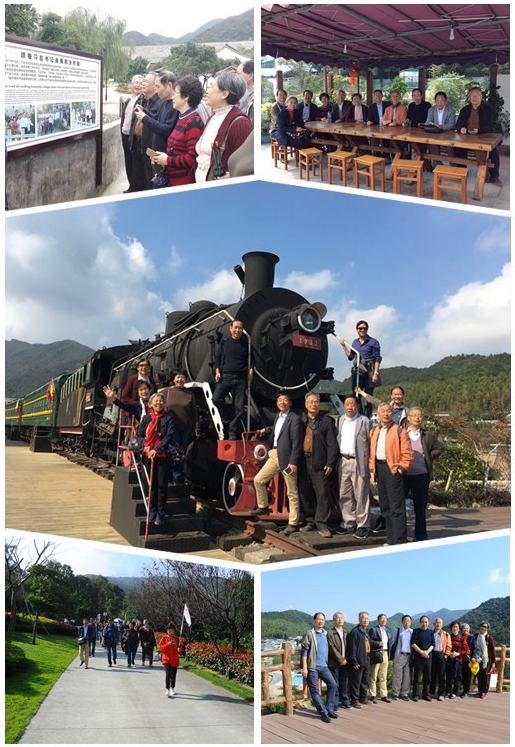 舟山南洞艺谷又称太阳谷,是中国戏剧基地、全国艺术院校实习基地、全国中小学教育体验基地、全国中老年休闲养生基地、中组部命名的全国先进基层党组织。南洞艺谷民俗壁画村是舟山最大规模的民俗壁画村,绘画面积近3000平方米,以舟山传统民俗文化为创作主题,并融入了民间风俗、农耕文化和海洋文化等元素。一幅幅充满艺术韵味的壁画爬满了民居的墙面,形成了“步步皆风景、人在画中游”的景观。2015年5月15日习总书记曾到此调研考察,当听说这里正在规划建设绿色生态旅游景区,习大大说“这很好,我在浙江工作时说‘绿水青山就是金山银山,’这是大实话,现在越来越多的人理解了这个观点,这就是科学发展、可持续发展,我们要奔着这个做。”老同志们沿着习总书记的足迹走访这绿水青山的美丽乡村,被这里清醒的空气、整洁的村道深深吸引,登高望远,心旷神怡。中午在习总书记点赞过的农家乐品尝农家土菜,体验着富起来的社会主义新农村的味道。饭后转道去了册子岛月亮湾,册子岛上有西堠门大桥和桃夭门大桥穿境而过,老同志们站在月亮湾的栈桥上,近距离欣赏这位列世界第三的悬索跨海大桥-金黄色的西堠门大桥雄伟身姿、领略大桥与苍翠的海岛山林、崎崛的海岸基岩、辽阔的蓝天碧海融在一起,感慨中国高超越和领先世界的建筑水平,深深体会到我们的祖国已经从站起来、富起来到强起来的伟大飞跃。