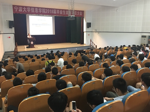 动员大会之后,学院还邀请了宁波知名上市企业均胜电子集团人力资源总监谢炜为大家做了一场有关“电子信息类大学生求职应聘”的辅导讲座。谢总从企业HR招聘的角度,分别从“如何找到个人优势”、“如何制作好的简历”、“如何准备面试”以及“如何进行职业选择”等方面,运用风趣幽默的语言,为大家上了一堂生动的就业指导课。