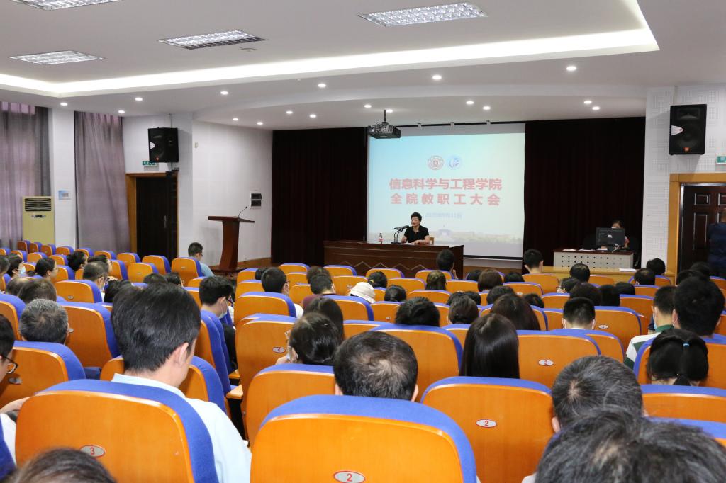 在曹光彪信息楼报告厅召开新学期全院教职工大会。学院党政领导和全院教职工参加了会议。院党委书记骆巧凤主持会议。