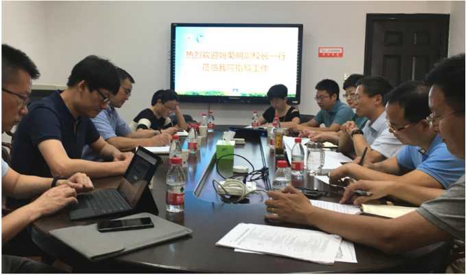院长夏银水从教师队伍、学科建设、科学研究、人才培养、等方面介绍了学院基本情况以及取得的成绩;汇报了学院的下一步发展思路,同时也反映了学院在发展中遇到的瓶颈和学院在空间调整中碰到的困难。党委书记骆巧凤就学院党委工作情况从亮点和不足两方面入手进行了简要介绍。其他院领导进行了补充汇报。