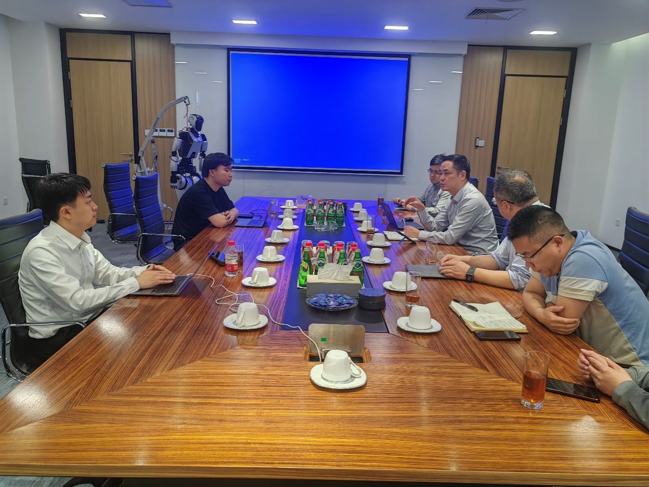 在交流会上,均胜电子副总裁郭继舜博士详细介绍了当前公司正在大力开展的人形机器人研发工作,分享了相关产业发展现状与趋势,并提出了与老王论坛