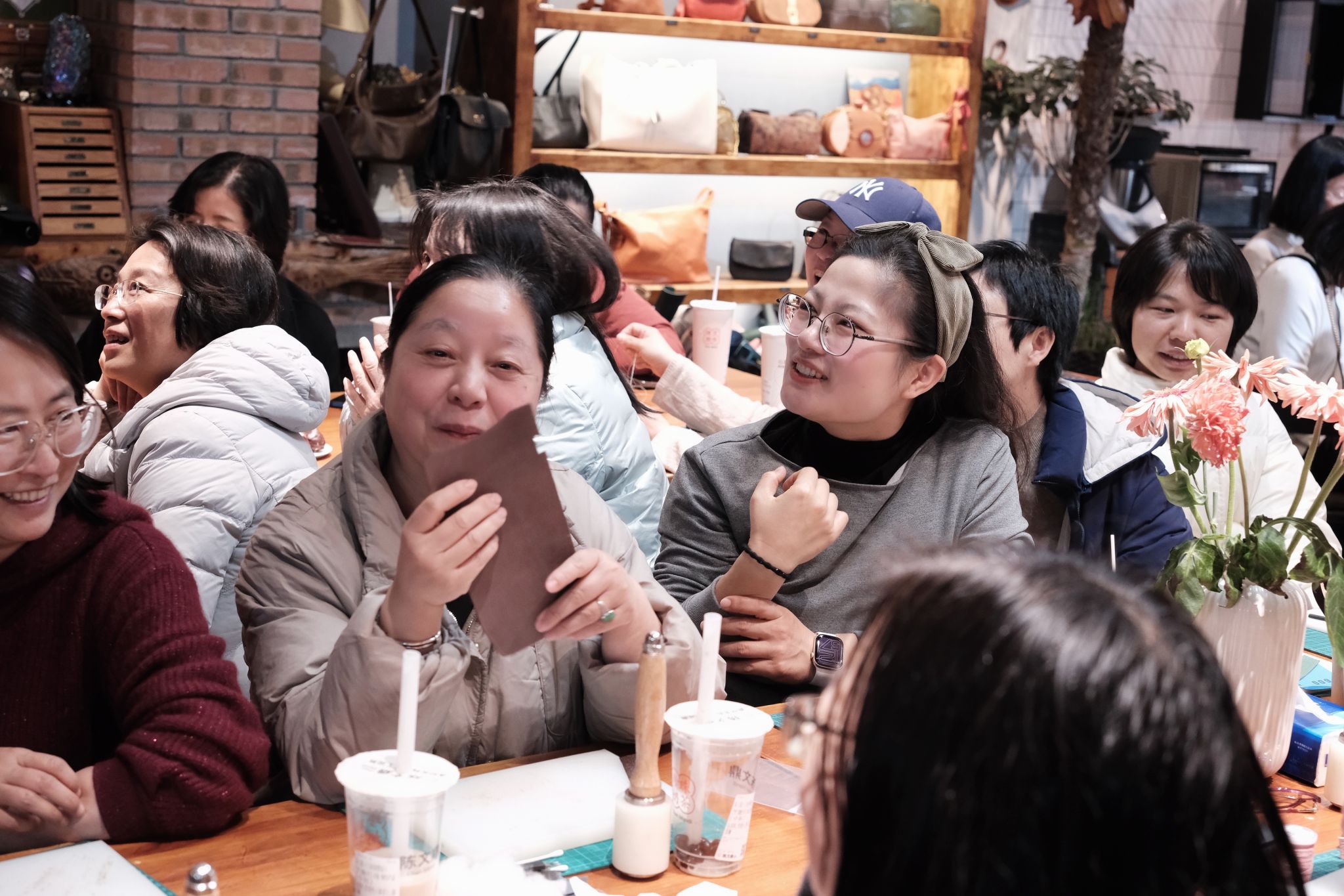 定制皮具内设三大情感载体:可镌刻姓名的"师者寄语"金属铭牌、封存手写祝福的时光胶囊、这份融合教育格言的手作,将成为诠释立德树人初心的立体教案。通过现场沉浸式创作,实现教职工的心理疗愈,正如参与的老师说到:“当专注力凝聚于皮革肌理,那些科研攻关的压力悄然转化为艺术创造的愉悦。”