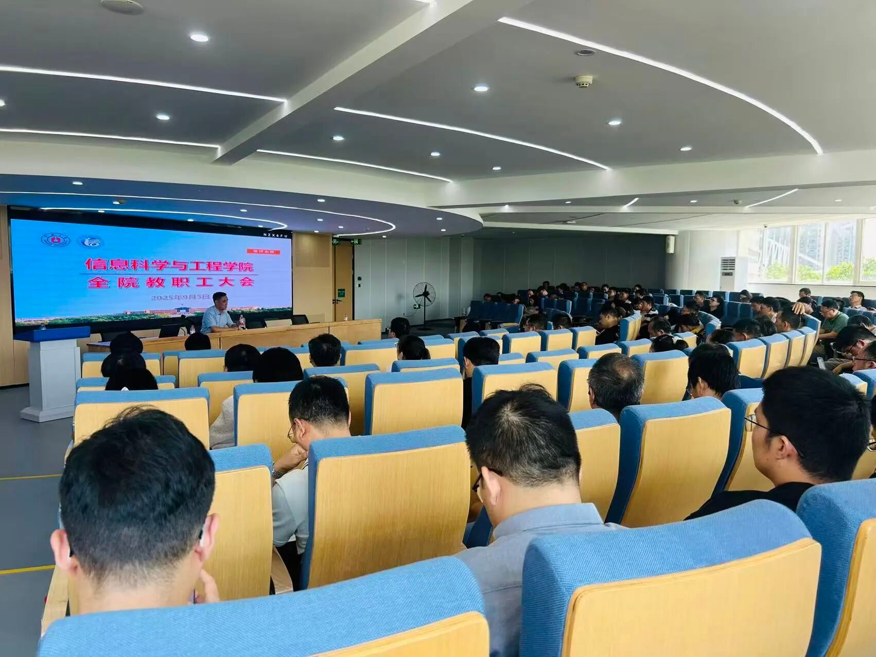 最后,沈祥院长作新学期动员讲话,分析了当前面临的机遇与挑战,强调全体教职工要聚力服务地方,聚焦人工智能领域形成教师-人工智能-学生三位一体的教学科研并重型工作循环,提升教学专注力、增强学生上课体验感,做能成就学生的好老师。沈祥告诫全体教职工科研上切记浮躁,青年教师在工作上一步一个脚印,并号召全体教职工凝心聚力,共同推动学院事业发展再上新台阶。