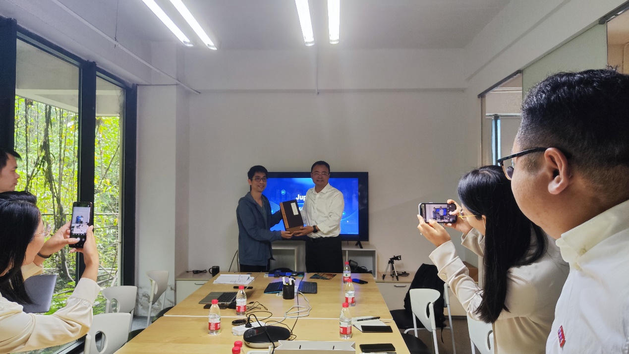 钱晓炯对母校领导的到访表示了热切的欢迎并带领大家了解菊风企业相关文化介绍,并对学院在菊风的实习生给予了高度评价,并且对学院的人才培训等进行充分肯定。学院党委书记王伦耀就今年学校的毕业生及相应就业情况向公司进行介绍,随后企业与在场10名未就业毕业生进行深入交流,并参观菊风企业的文化及布局。