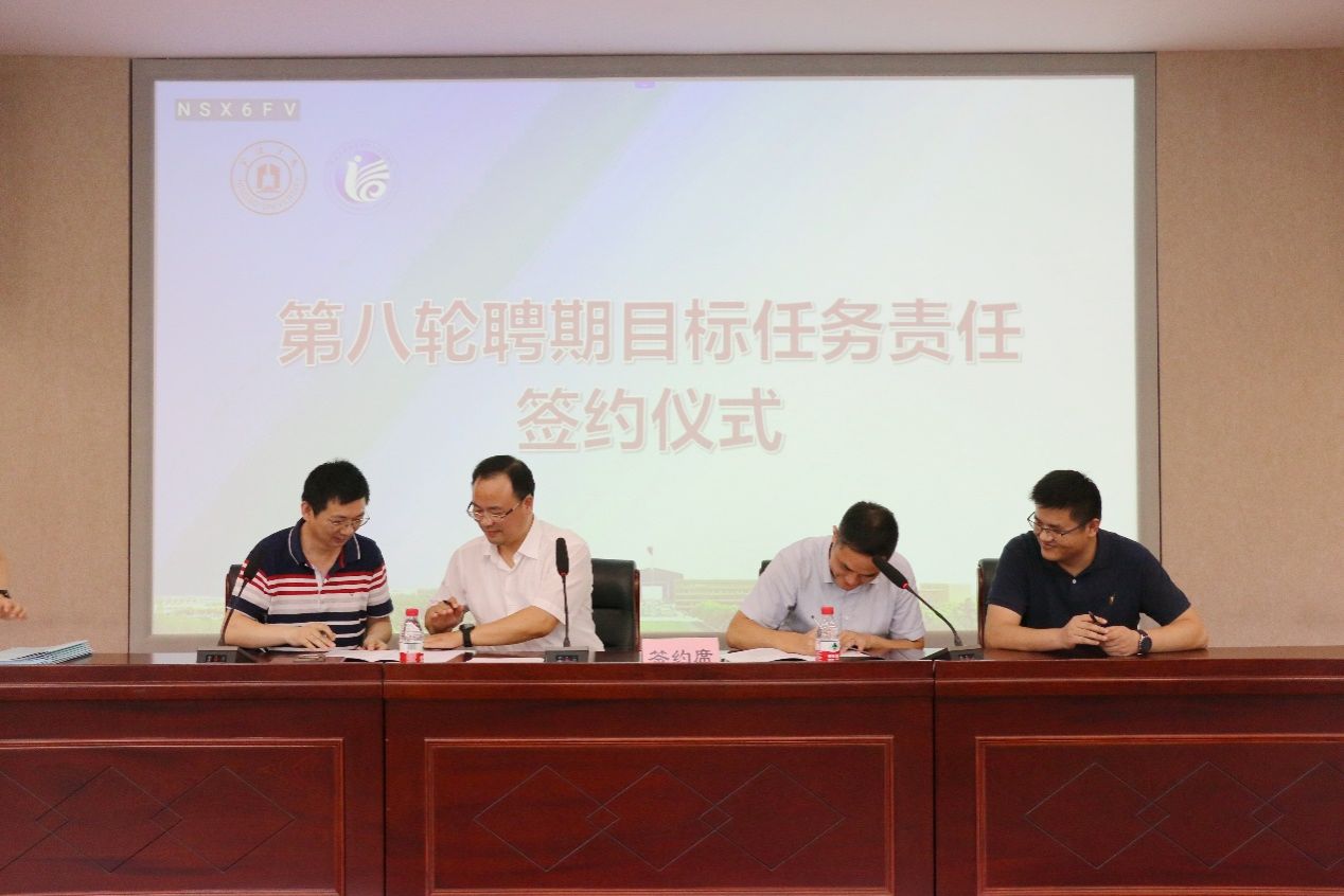 在杨咏曼楼二楼报告厅召开了全院教职工大会,并举行了第八轮聘期目标任务责任、廉政责任与安全稳定责任签约仪式。